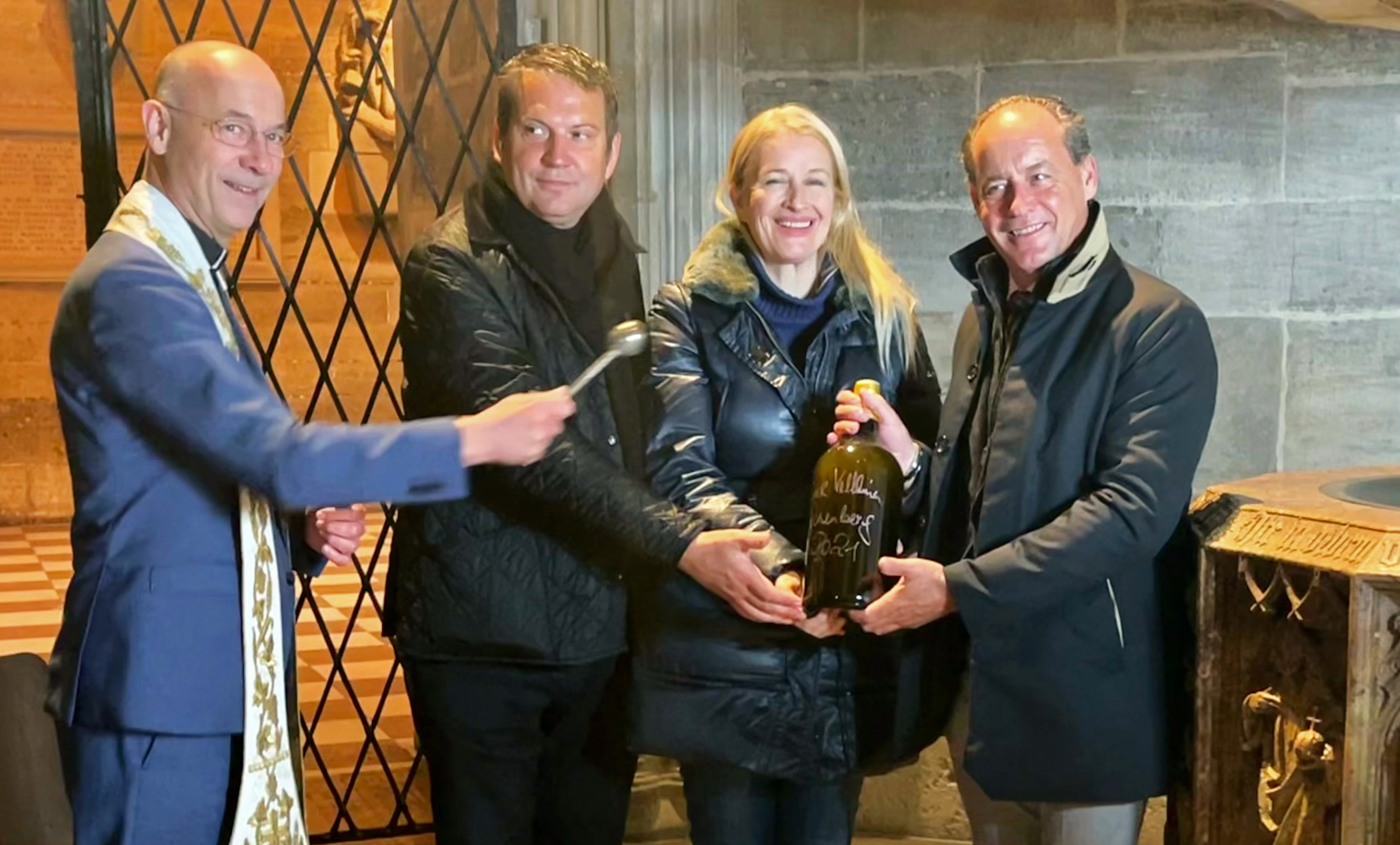 Dompfarrer Toni Faber bei der Segnung mit Anton Bauer, Barbara Stöckl und Erwin Soravia