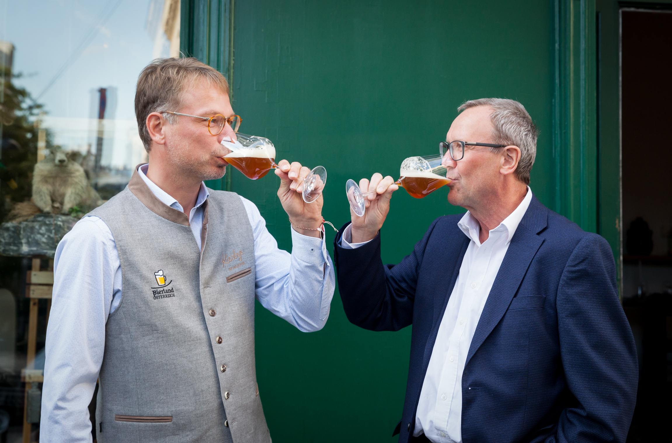 Braumeister Axel Kiesbye und Bundesforste-Vorstand Rudolf Freidhager