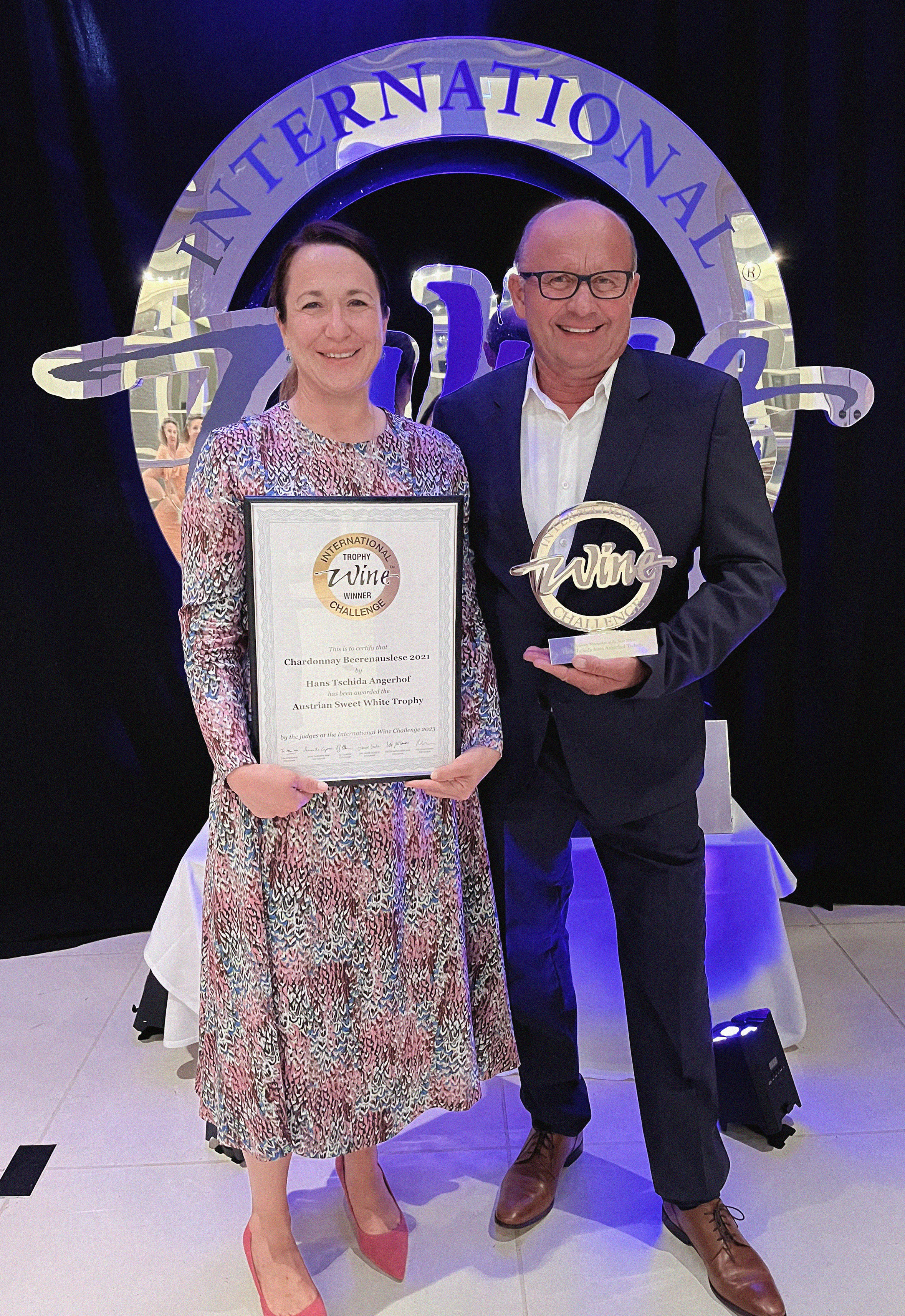 Hans Tschida mit seiner Tochter Daniela Salzl-Tschida auf der Bühne